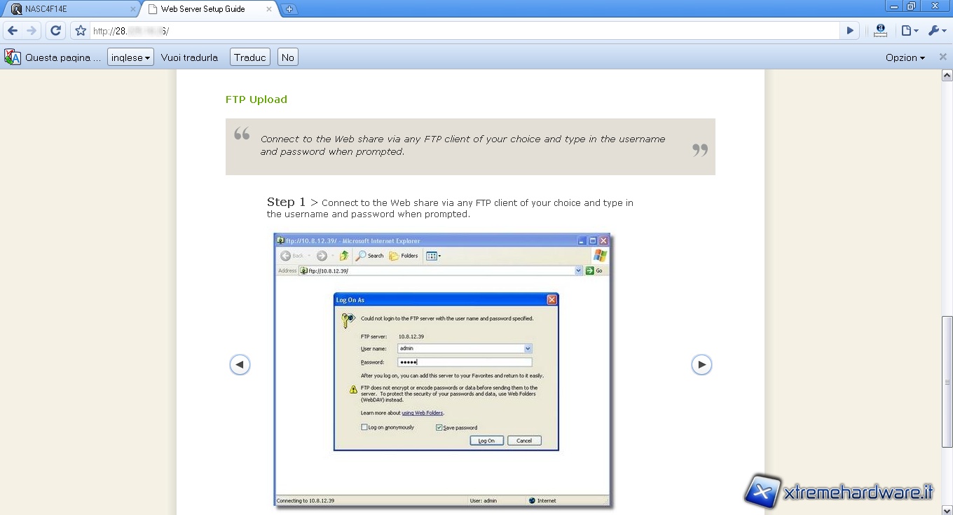 Per accedere all’unità è sufficiente inserire nella barra del percorso di una cartella l’indirizzo IP del NAS, preceduto dal protocollo: ftp://28.xxx.xxx.xxx